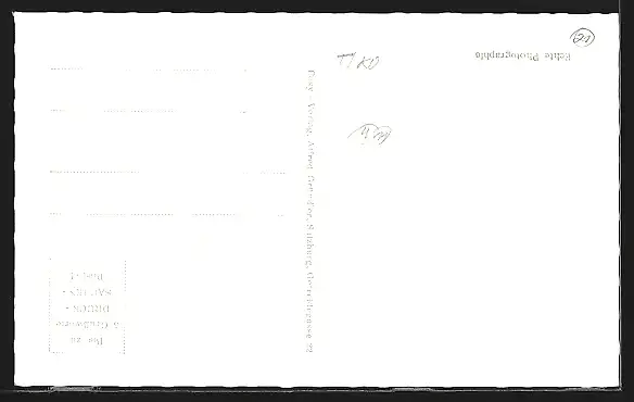 Personenbezogene Daten auf der Rückseite der Karte wurden durch blauen Textmarker unkenntlich gemacht. Die blauen Stellen sind auf die Vorderseite durchgeweicht und wirken sich negativ auf das Postkartenfoto aus