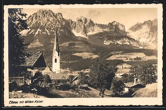 AK Ellmau, Ortsansicht mit Wildem Kaiser