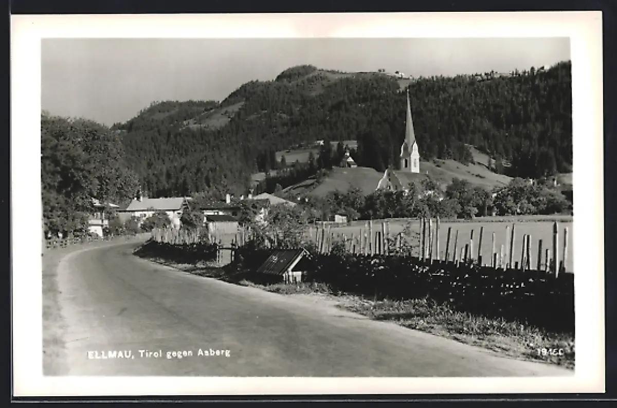 AK Ellmau /Tirol, Strassenpartie mit Kirche gegen Asberg