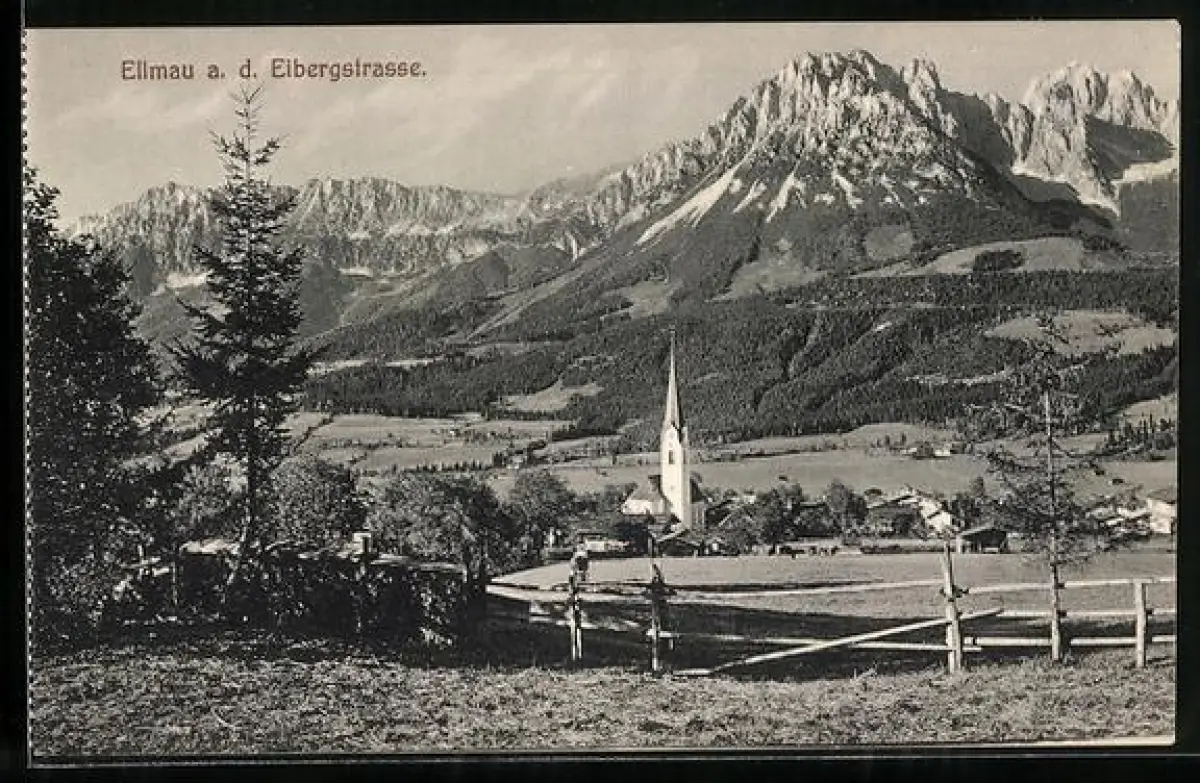 AK Ellmau a. d. Eibergstrasse, Ortsansicht mit Kirche