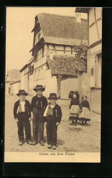AK Elsässer Buben und Mädchen in Tracht auf der Strasse