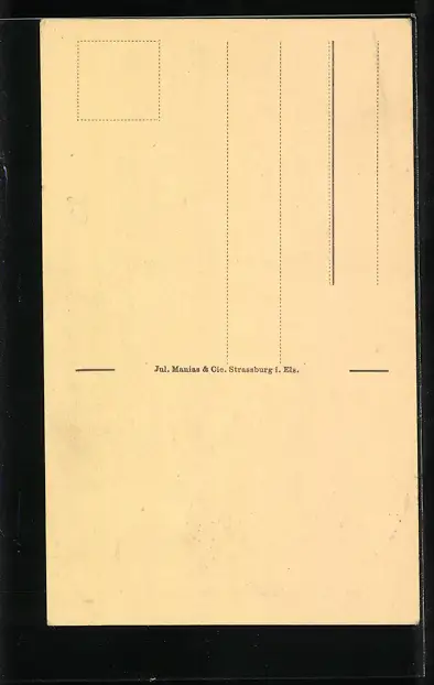 Personenbezogene Daten auf der Rückseite der Karte wurden durch blauen Textmarker unkenntlich gemacht. Die blauen Stellen sind auf die Vorderseite durchgeweicht und wirken sich negativ auf das Postkartenfoto aus