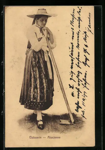 AK Elsässerin in Tracht mit Hacke
