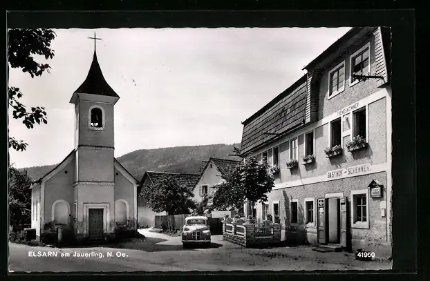 AK Elsarn am Jauerling, Strassenpartie mit Gasthof Schenner und Kirche