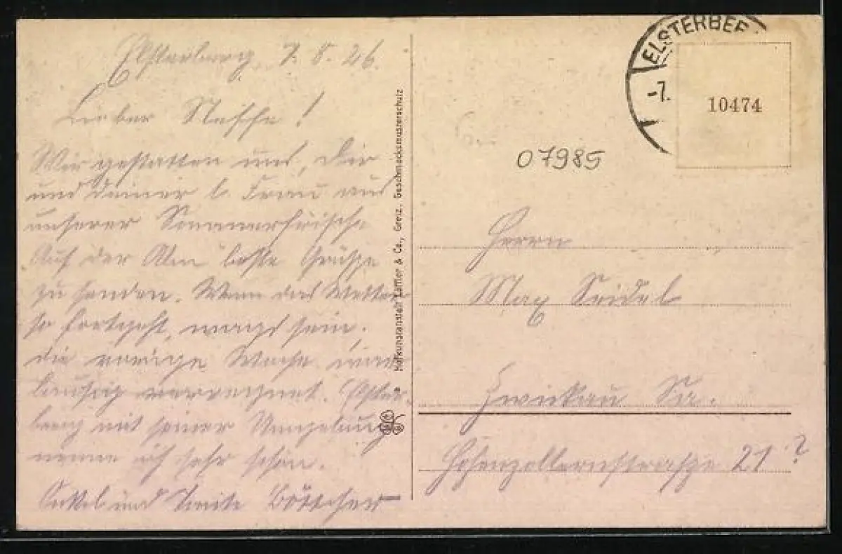 alte Ansichtskarte, gelaufen 1926, Briefmarke entfernt, guter Zustand