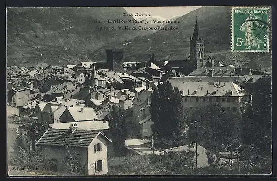 AK Embrun, Vue generale, au fond, Vallee de Crevoux-Parpaillon