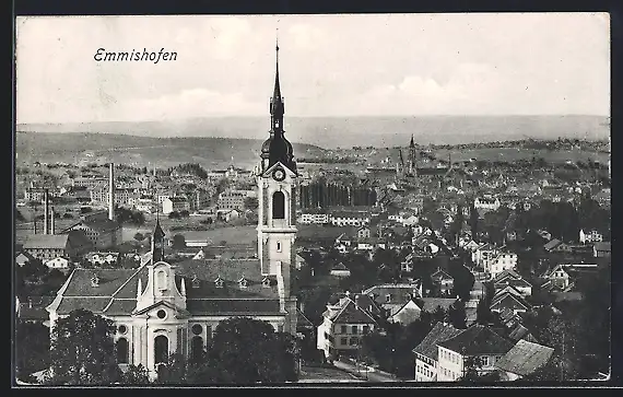 AK Emmishofen, Teilansicht mit Kirche und Blick in die Ferne