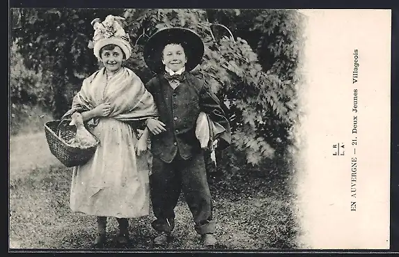 AK En Auvergne, Deux Jeunes Villageois, Kinder in Trachtenkleidung