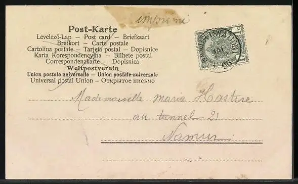 gelaufen 1904, rückseitig Klebe- und Papierreste, guter Zustand