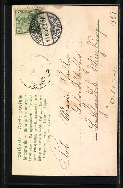 alte Ansichtskarte, gelaufen 1904, guter Zustand