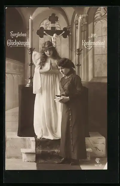 AK Engel wacht über Mädchen bei ihrer Konfirmation