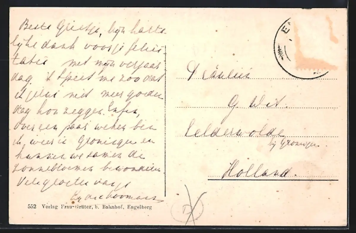 alte Ansichtskarte, gelaufen, Briefmarke entfernt, rückseitig Oberflächenschaden, guter Zustand