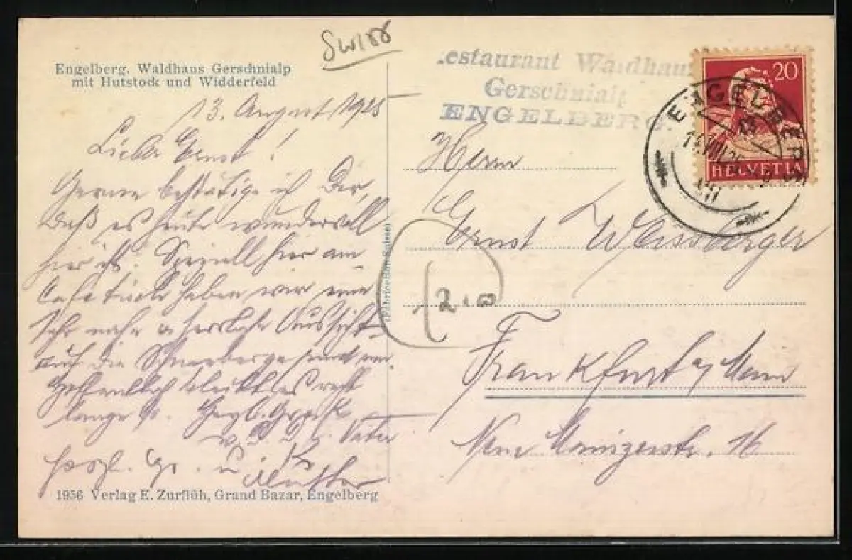 AK Engelberg, Gasthaus Waldhaus Geschnialp mit Hutstock und Widderfeld
