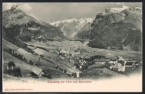 AK Engelberg, Ortsansicht mit Titlis und Spannörter