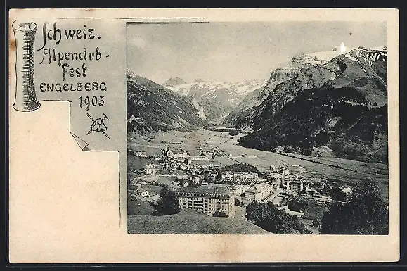 AK Engelberg, Schweiz. Alpenclub-Fest 1905, Ortsansicht mit Bergpanorama