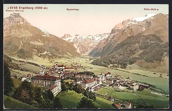 AK Engelberg, Totalansicht mit Hahnen, Spannörter und Titlis