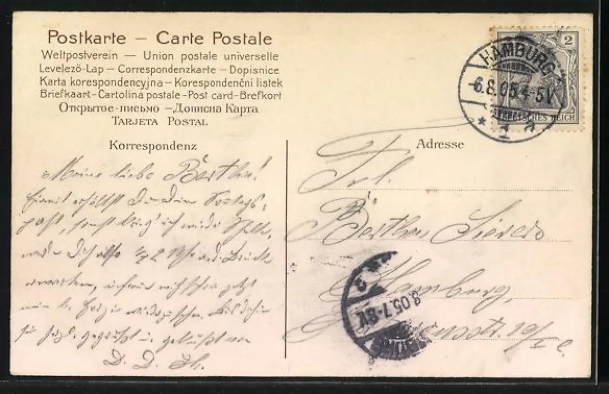 alte Ansichtskarte, gelaufen 1905, Stempelspur, guter Zustand