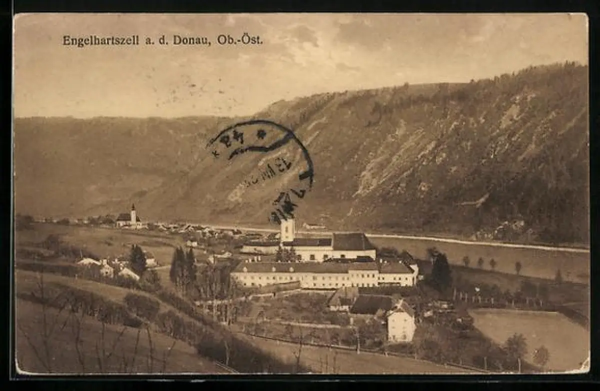 AK Engelhartszell a.d. Donau, Kloster aus der Vogelschau