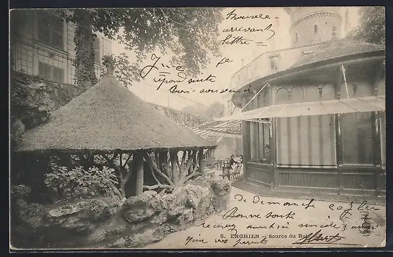 AK Enghien, Source du Roy mit Pavillon und Strohhütte