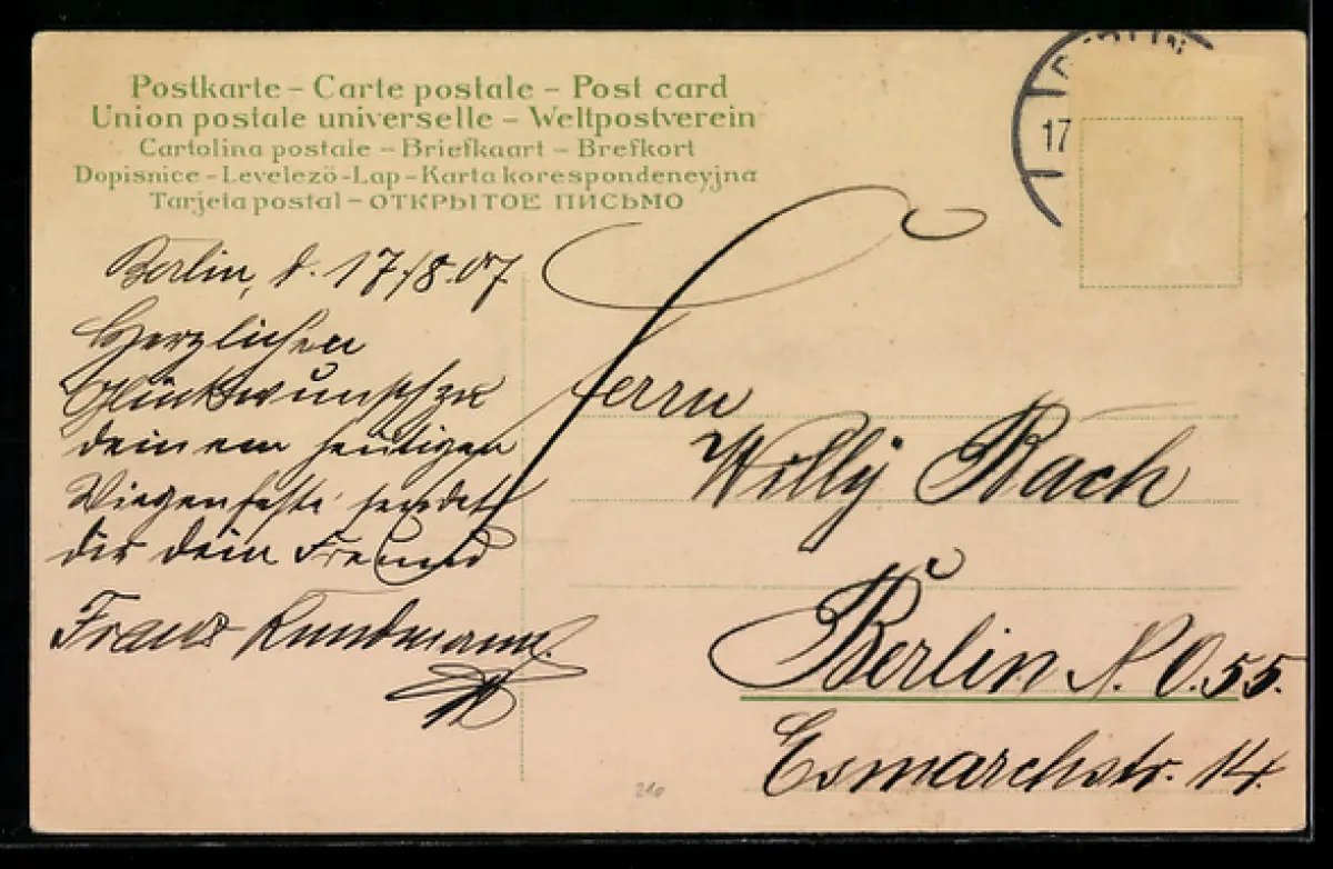 alte Ansichtskarte, gelaufen, Briefmarke entfernt, guter Zustand