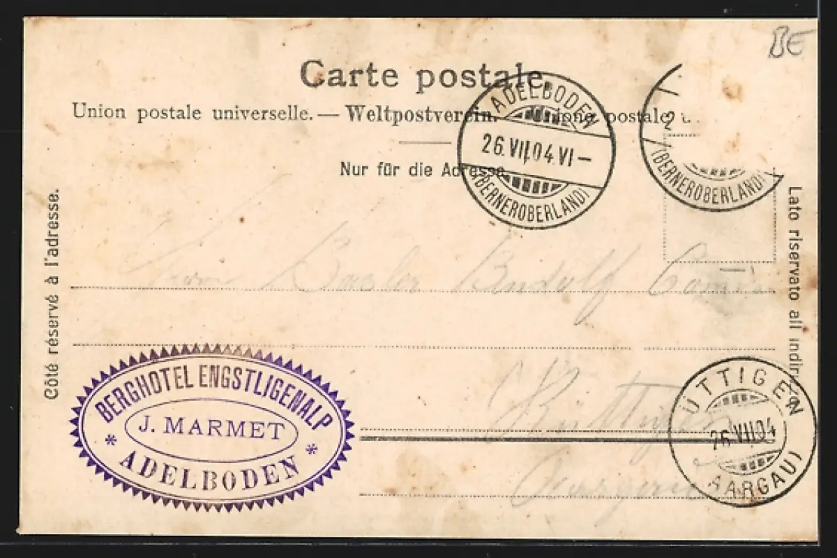alte Ansichtskarte, gelaufen 1904, Briefmarke entfernt, rückseitig Oberflächenschaden, guter Zustand