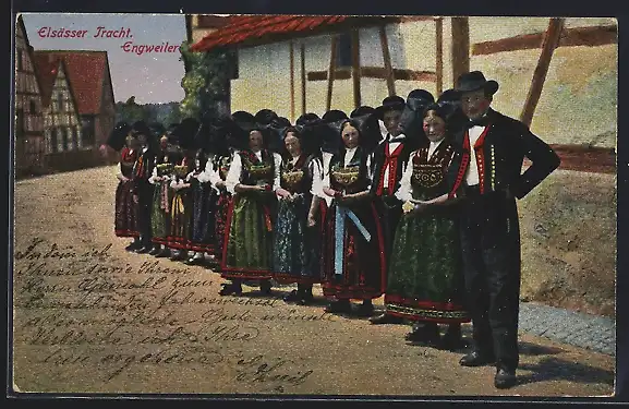 AK Engweiler, Mann und Frauen in elsässer Tracht