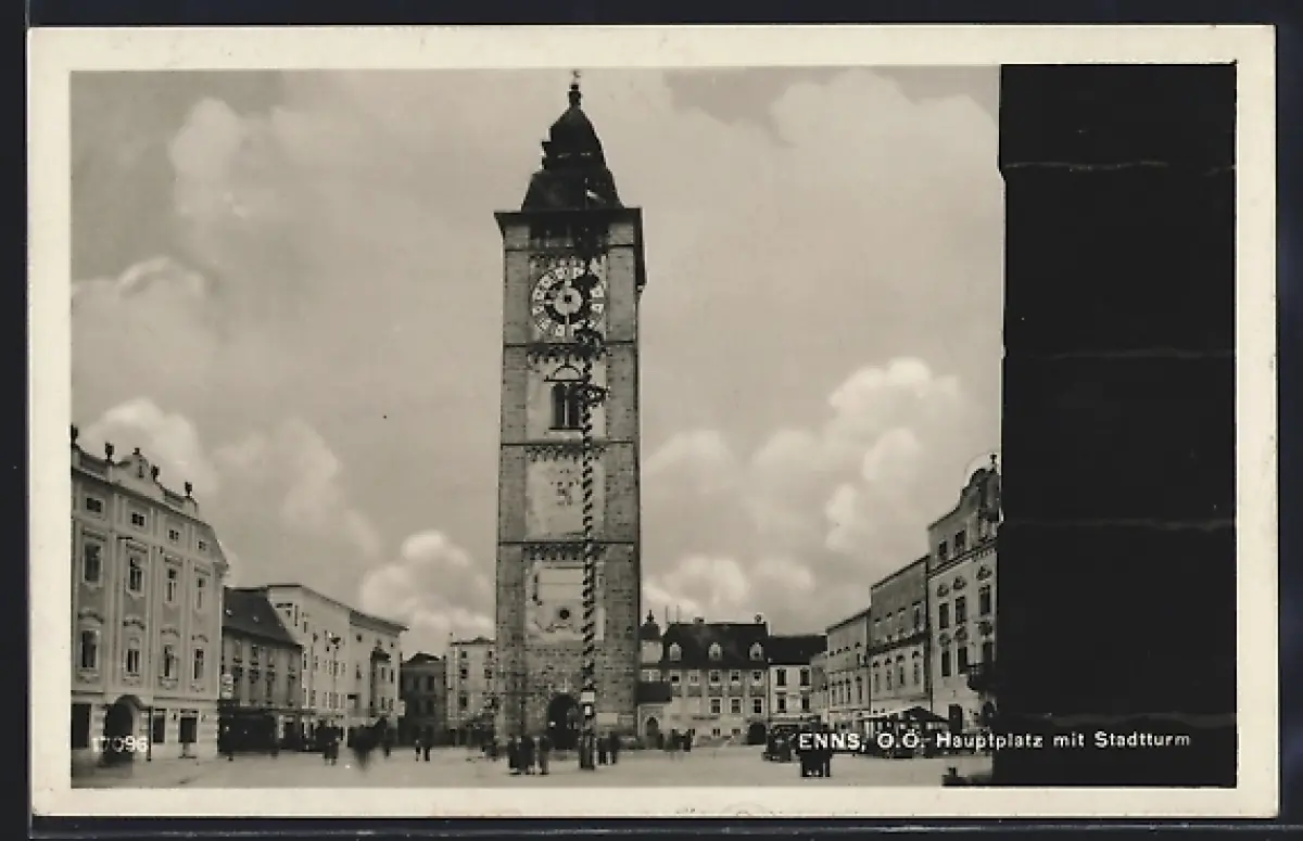 AK Enns /O. Ö., Hauptplatz mit Stadtturm