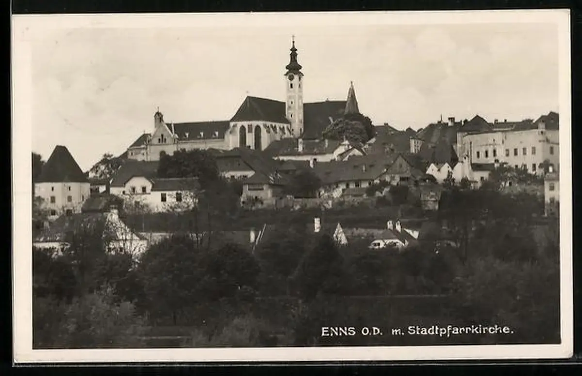 AK Enns, Teilansicht mit Stadtpfarrkirche