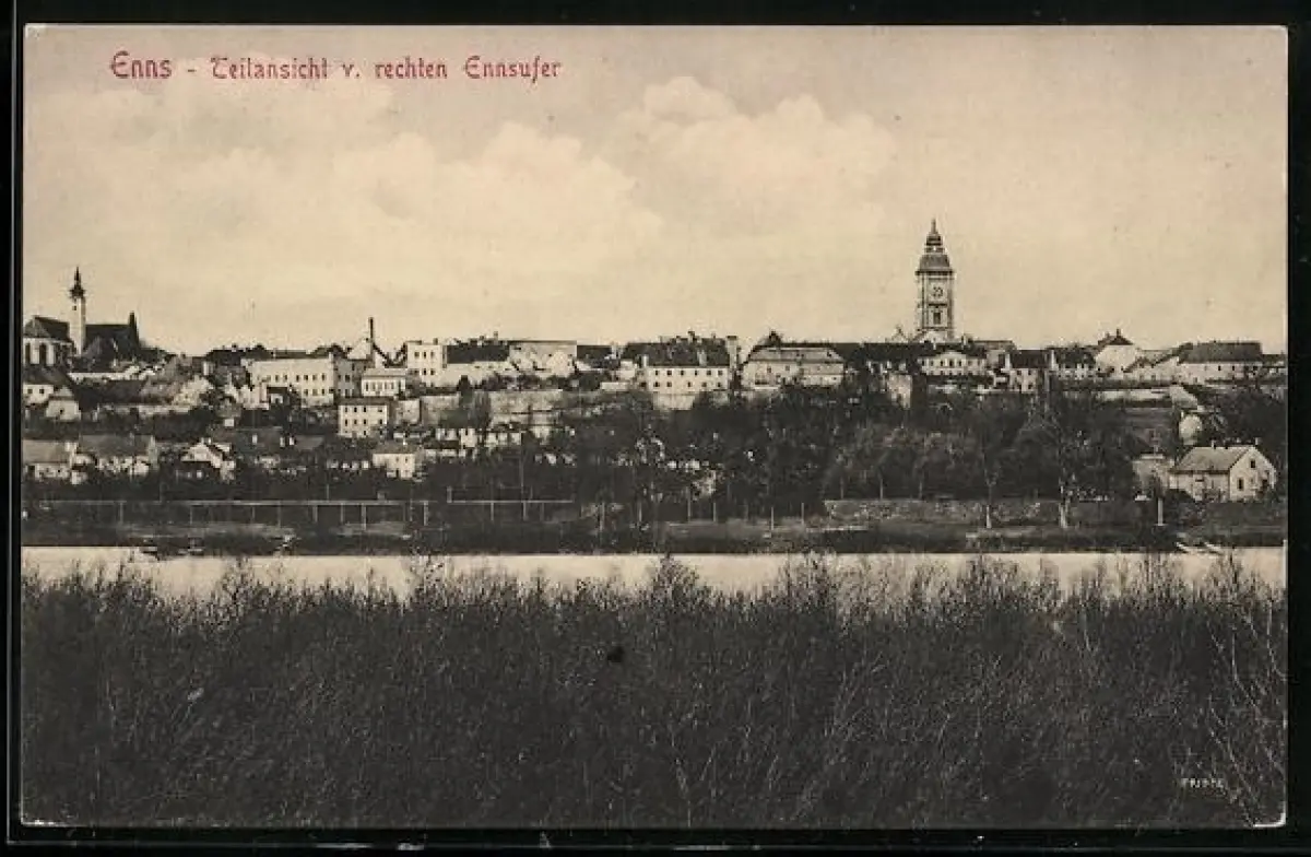 AK Enns, Teilansicht v. rechten Ennsufer aus gesehen