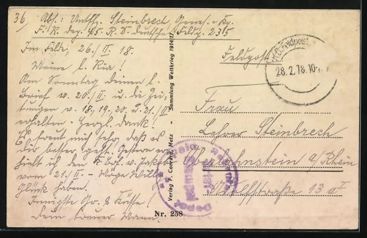 gelaufen 1918, guter Zustand