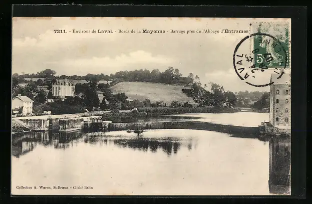 AK Entrames, Bords de la Mayenne, Barrage près de l`Abbaye d`Entrames