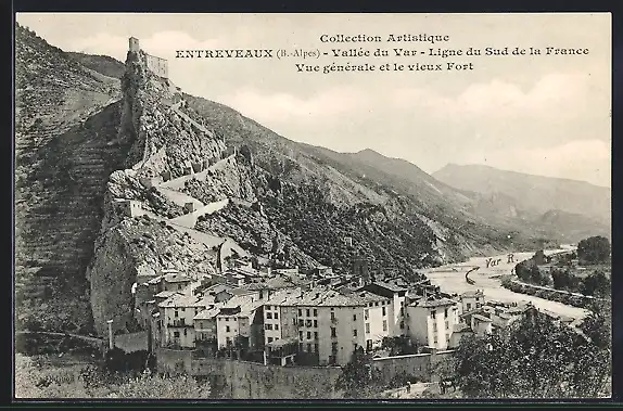 AK Entreveaux, vue générale et le vieux fort, vallée du Var