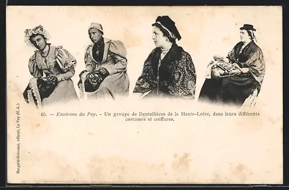 AK Environs du Puy, Auvergne, Un groupe de Dentellières de la Haute-Loire, dans leurs différents costumes et coiffures