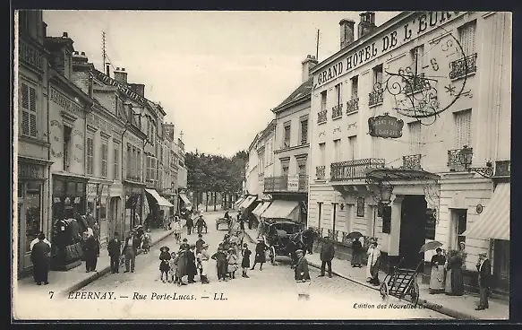 AK Épernay, Grand Hotel de l`Europe et Rue Porte-Lucas