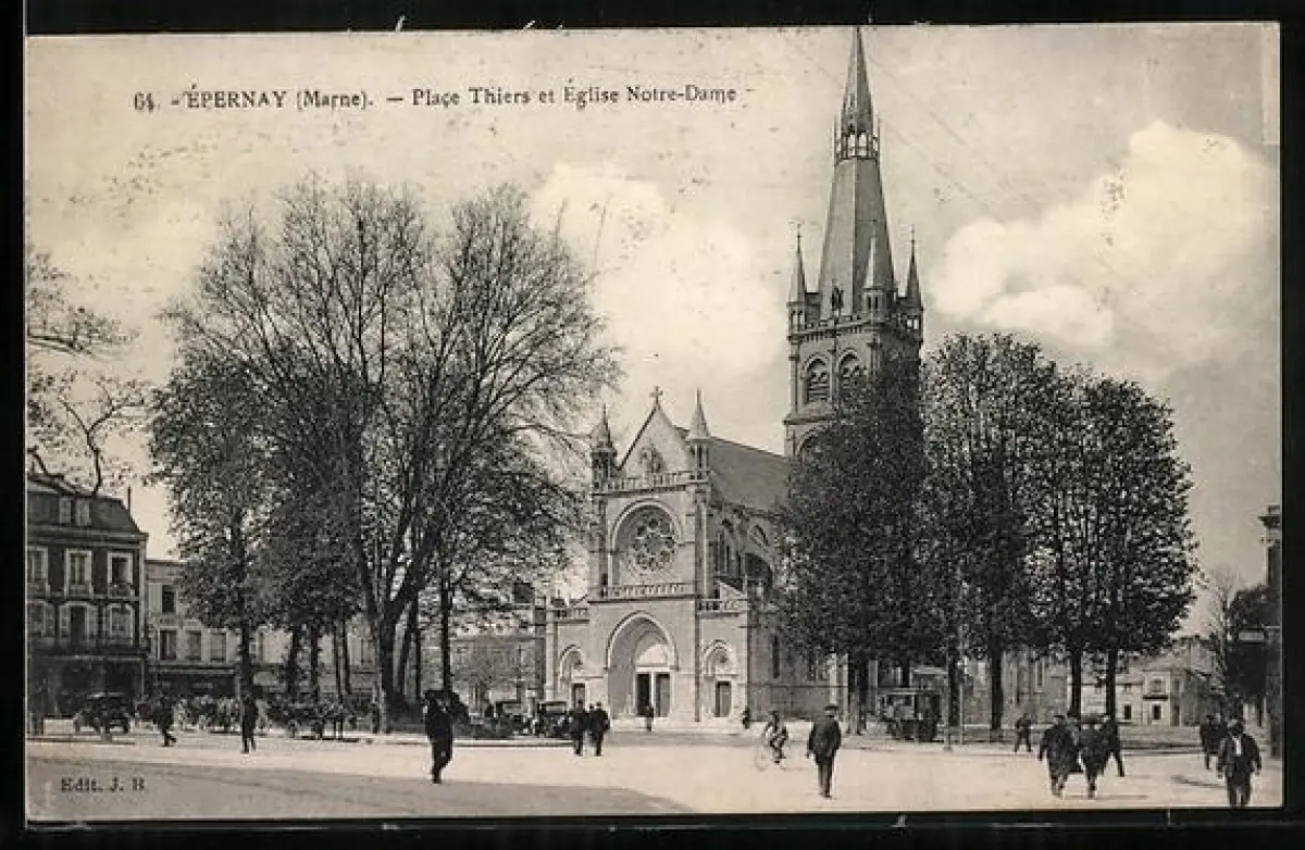 AK Épernay /Marne, Place Thiers et Église Notre-Dam