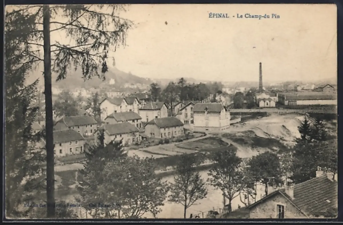 AK Épinal, Le Champ-du-Pin, vue sur les bâtiments et la cheminée industrielle