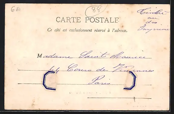 gelaufen 1902, rückseitig Klebe- und Papierreste, guter Zustand