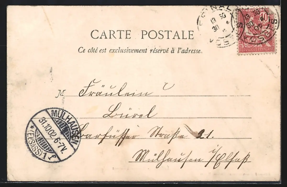 gelaufen 1902, Eckknick unten rechts, Stempelspur, guter Zustand