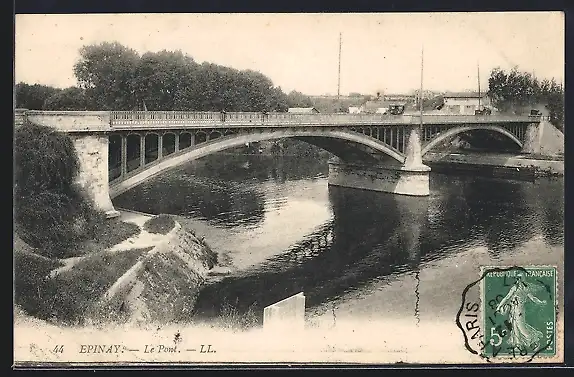 AK Épinay, Le Pont sur la rivière avec vue panoramique