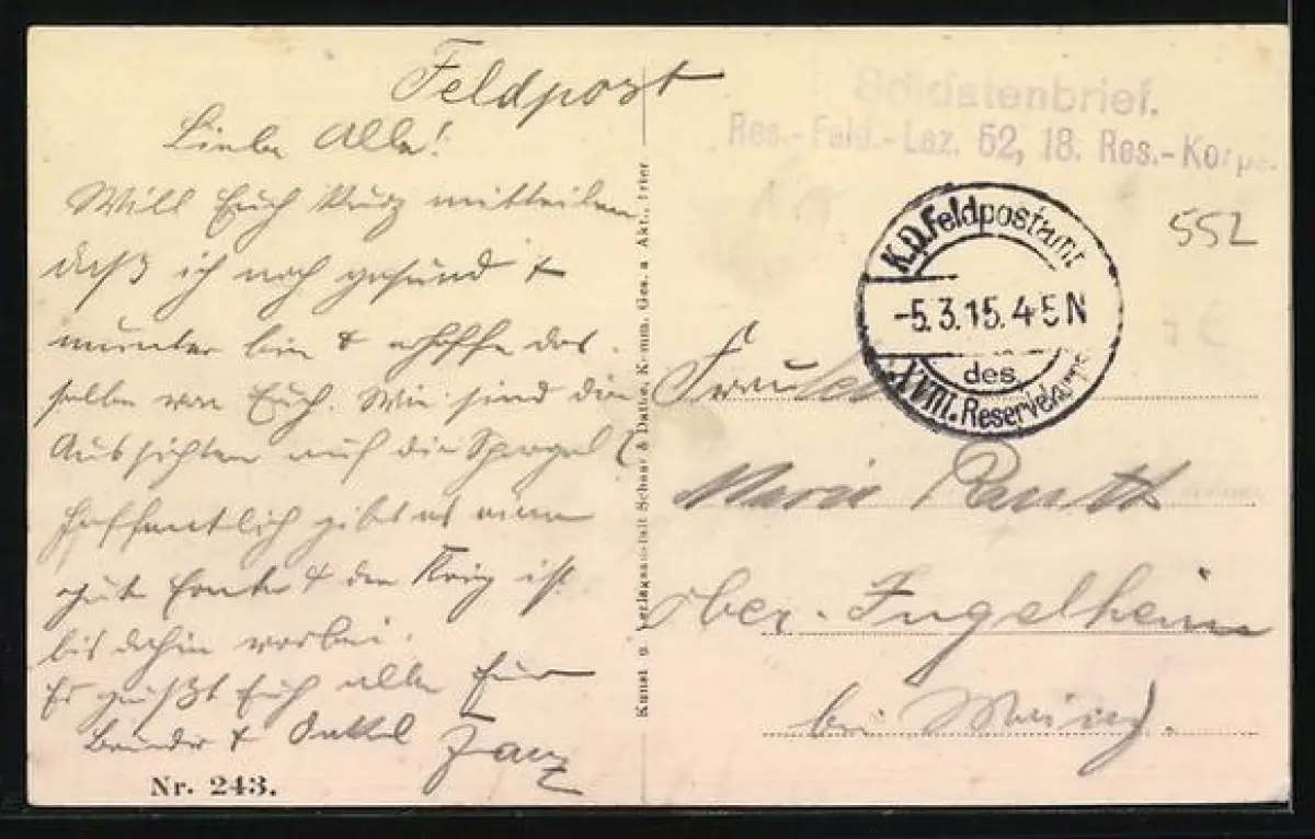 alte Ansichtskarte, gelaufen 1915, guter Zustand