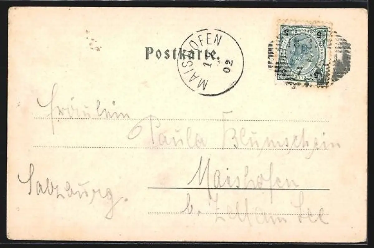 alte Ansichtskarte, gelaufen 1902, Stempelspur, guter Zustand