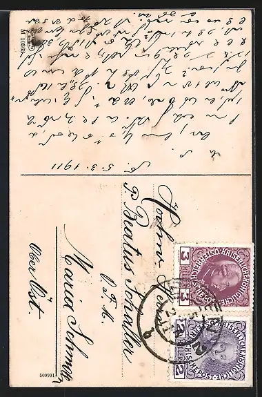 gelaufen 1911, Eckknick re. oben, guter Zustand
