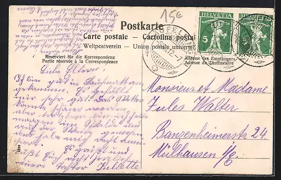 gelaufen 1912, Eckknick re. unten, guter Zustand