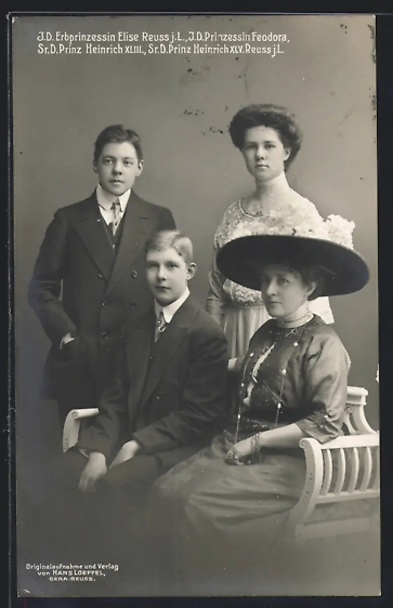 AK Erbprinzessin Elise Reuss, Prinzessin Feodora, Prinz Heinrich XLIII., Prinz Heinrich XLV.