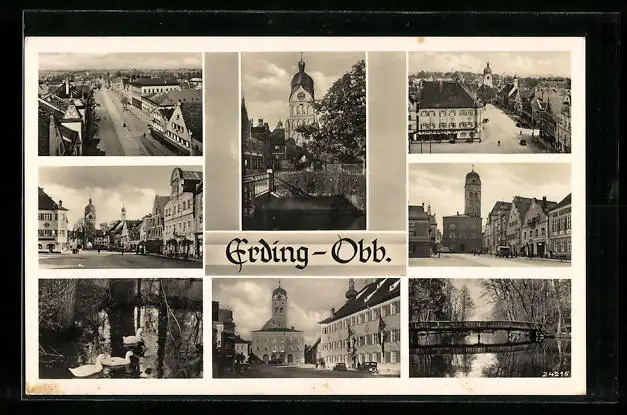 AK Erding /Obb., Strassenpartien, Marktplatz, Ententeich