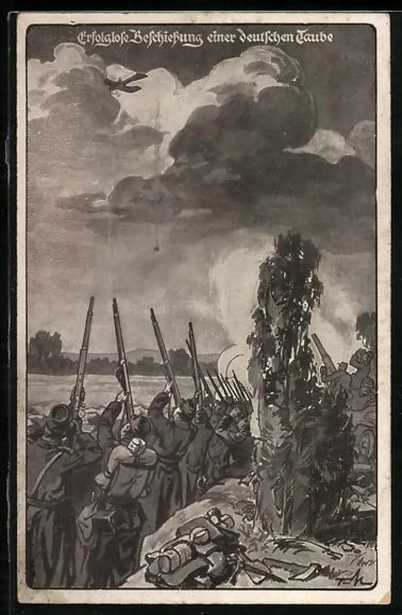 AK Erfolgreiche Beschiessung eines deutschen Flugzeuges Typ Taube