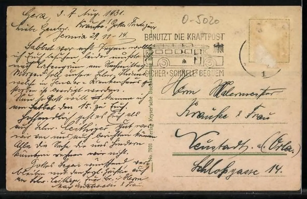 gelaufen 1931, Briefmarke entfernt, Eckknick unten links, guter Zustand