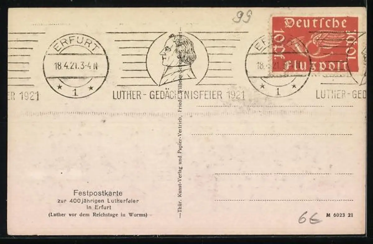 AK Erfurt, Augustinerkirche, Lutherdenkmal, 400-jährige Lutherfeier 1921
