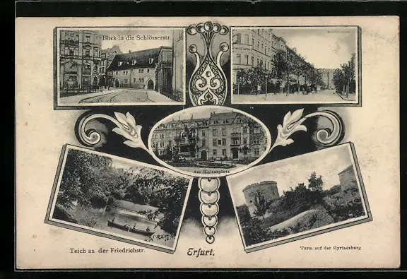 AK Erfurt, Blick in die Schlösserstrasse, Am Kaiserplatz, Teich an der Friedrichstrasse