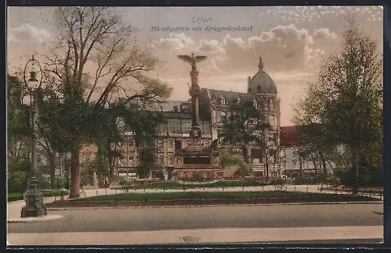 AK Erfurt, Hirschgarten mit Kriegerdenkmal